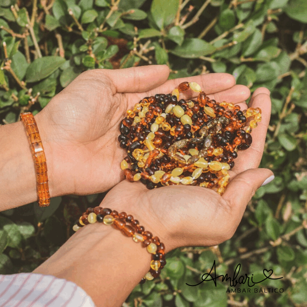 Qué pasa durante la noche: Hay personas que prefieren sacarles el collar a sus hijos para dormir, pero no pasa nada si se les deja. Es cortito, las guaguas no lo ven y no lo pueden tirar ni enredarse en él. Y las cuentas de ámbar vienen anudadas de a una para evitar que se suelten y sean ingeridas.
