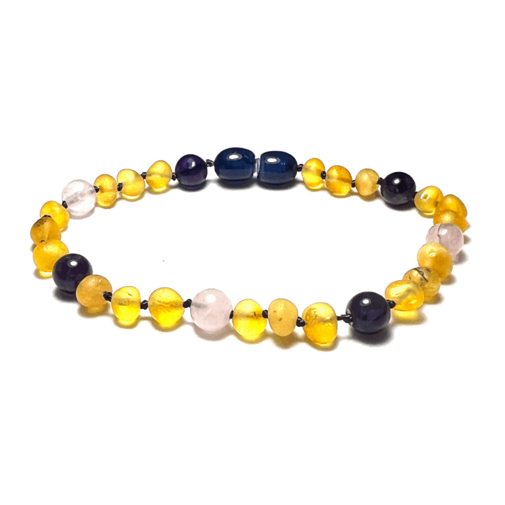 Pulsera Ámbar Adulto Miel, Cuarzo y Amatista